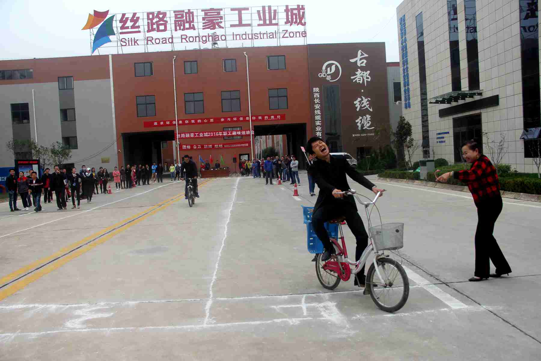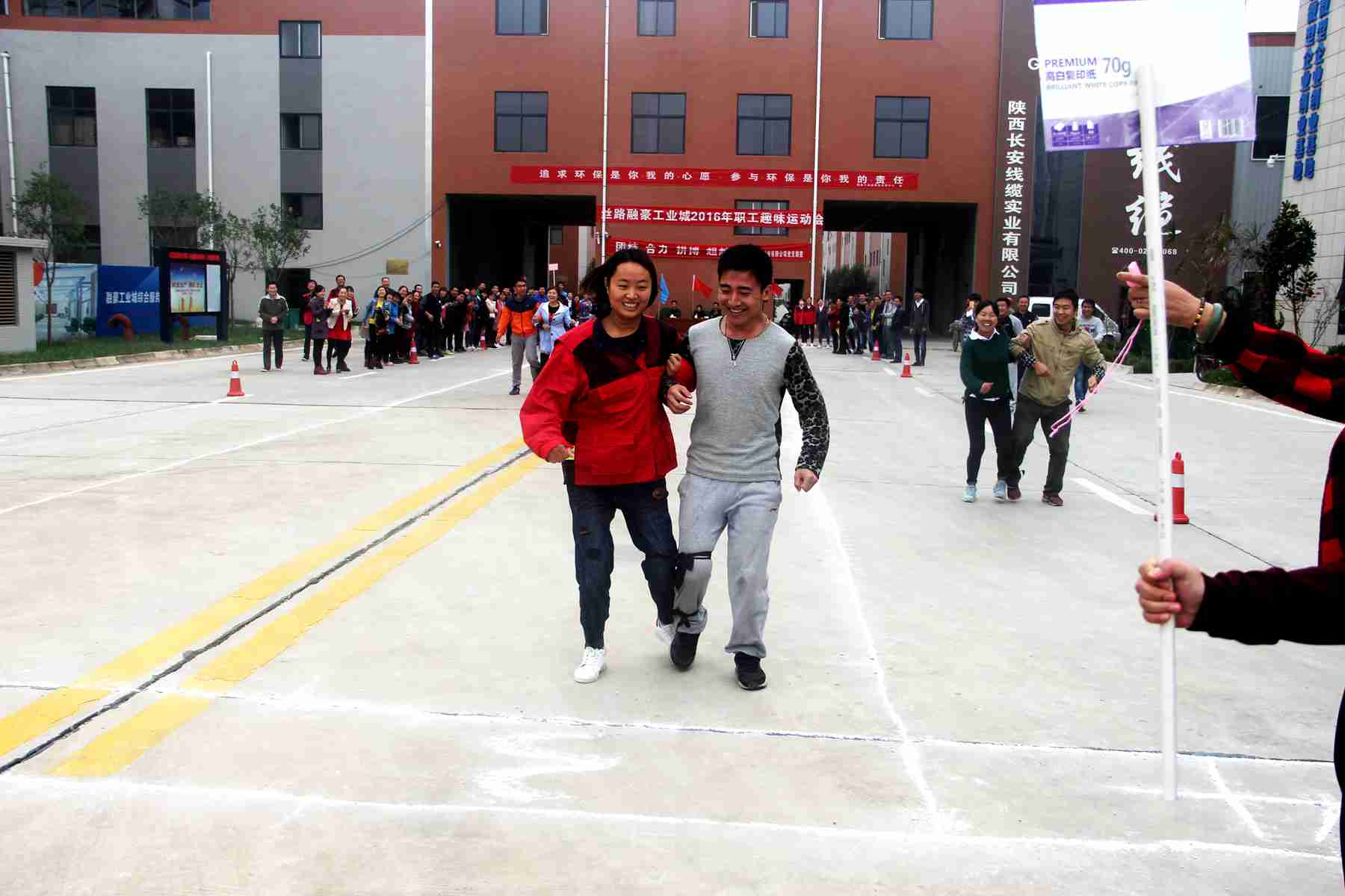 2016年10月15日下午,融豪工業(yè)城首屆趣味運(yùn)動(dòng)會(huì)在園區(qū)舉行,參加運(yùn)動(dòng)會(huì)的有園區(qū)企業(yè):陜西長(zhǎng)安線纜實(shí)業(yè)有限公司、 陜西典雅包裝有限公司 、陜西東聯(lián)印刷有限公司、合肥市振華餐飲管理有限公司西安市高陵區(qū)分公司、 陜西嘉寶莉建筑節(jié)能科技有限公司、 陜西藍(lán)晟新材料研發(fā)有限公司的員工代表,以及融豪工業(yè)城全體員工共百余人。運(yùn)動(dòng)會(huì)由行政部經(jīng)理馮瑛主持,總經(jīng)理張巧娟任裁判長(zhǎng)、預(yù)算部經(jīng)理許嶸、財(cái)務(wù)部經(jīng)理郭芝芳分別任起點(diǎn)裁判和終點(diǎn)裁判。
