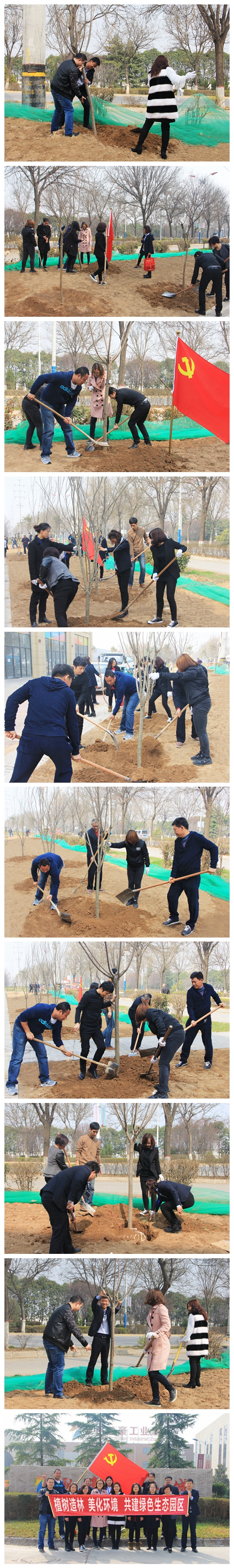 活動(dòng)中,黨員們以實(shí)際行動(dòng)響應(yīng)“支部五帶頭、黨員五率先”帶頭作用,小伙伴們?nèi)艘唤M干的熱火朝天,挖坑、搬樹苗、種樹、澆水,確保樹木的成活率。植樹現(xiàn)場(chǎng)個(gè)個(gè)熱情高漲,洋溢著一種團(tuán)結(jié)協(xié)作、奮發(fā)向上的融洽氛圍,大家用自己的雙手努力營(yíng)造一個(gè)良好的“宜商、宜業(yè)、宜居”綠色生態(tài)園區(qū),為入駐企業(yè)提供高質(zhì)量的生產(chǎn)生活環(huán)境。