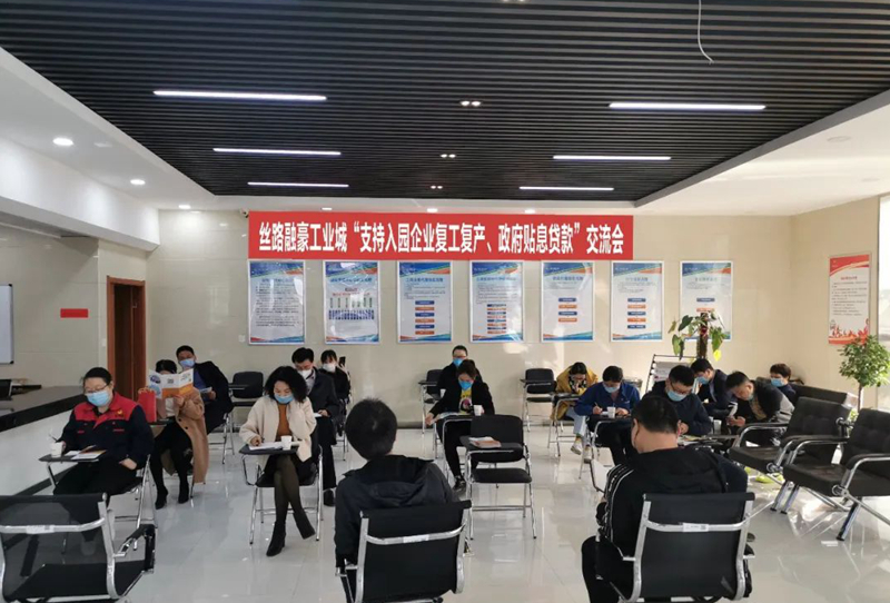 絲路融豪工業(yè)城“支持入園企業(yè)復(fù)工復(fù)產(chǎn)、政府貼息貸款”交流會(huì)在服務(wù)管理中心舉行