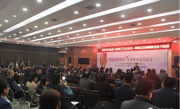 由西安市高陵區(qū)總工會、西安市公安局高陵分局主辦,絲路融豪工業(yè)城承辦的“堅持文化自信·豐富職工文化生活”——高陵區(qū)絲路融豪金秋書畫展于2020年10月29日上午10點在絲路融豪工業(yè)城服務(wù)管理中心三樓開幕。