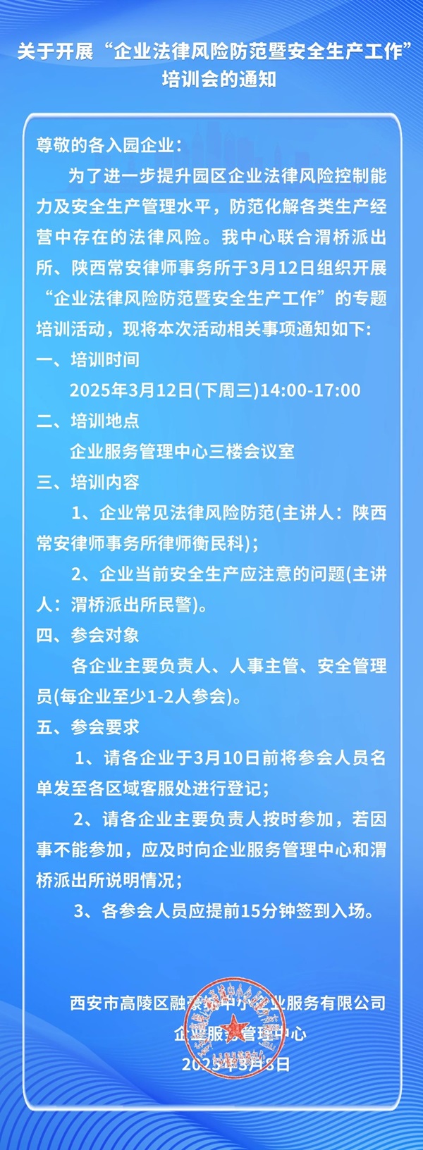 【通知公告】關(guān)于開(kāi)展“企業(yè)法律風(fēng)險(xiǎn)防范暨安全生產(chǎn)工作”培訓(xùn)會(huì)的通知