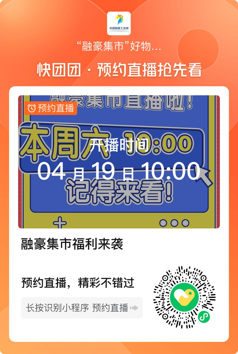 4月19日10點,直播將準時開啟!屆時,主播將送出超多福利,趕緊鎖定絲路融豪快團團直播間,準點來看!