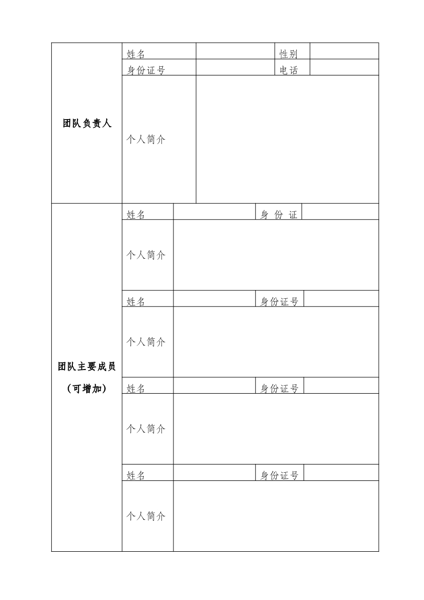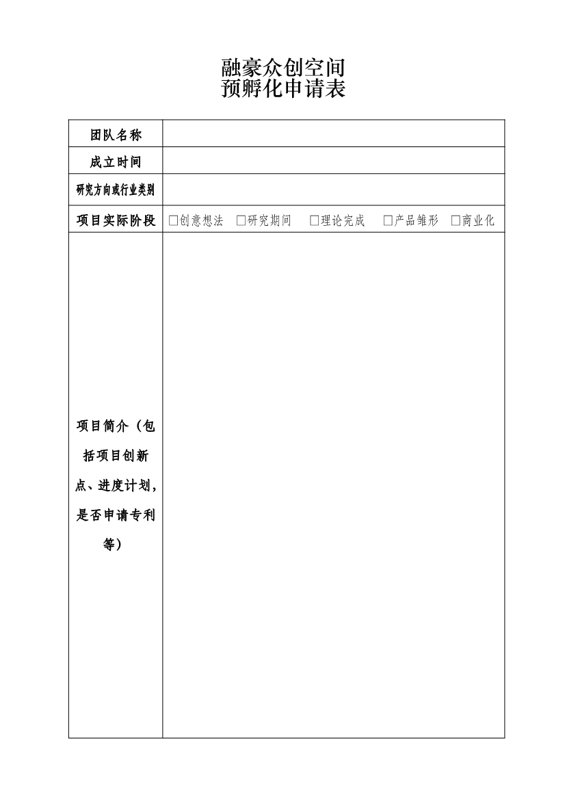 融豪眾創(chuàng)空間預(yù)孵化申請表