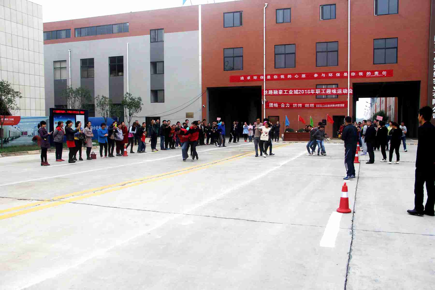 2016年10月15日下午,融豪工業(yè)城首屆趣味運(yùn)動(dòng)會(huì)在園區(qū)舉行,參加運(yùn)動(dòng)會(huì)的有園區(qū)企業(yè):陜西長(zhǎng)安線纜實(shí)業(yè)有限公司、 陜西典雅包裝有限公司 、陜西東聯(lián)印刷有限公司、合肥市振華餐飲管理有限公司西安市高陵區(qū)分公司、 陜西嘉寶莉建筑節(jié)能科技有限公司、 陜西藍(lán)晟新材料研發(fā)有限公司的員工代表,以及融豪工業(yè)城全體員工共百余人。運(yùn)動(dòng)會(huì)由行政部經(jīng)理馮瑛主持,總經(jīng)理張巧娟任裁判長(zhǎng)、預(yù)算部經(jīng)理許嶸、財(cái)務(wù)部經(jīng)理郭芝芳分別任起點(diǎn)裁判和終點(diǎn)裁判。