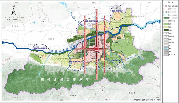 圍繞城市核心功能,形成古都核心功能承載區(qū)、國家科學(xué)與科技創(chuàng)新中心引領(lǐng)區(qū)、北部先進(jìn)制造集聚區(qū)、東部雙向開放引領(lǐng)區(qū)、南部高新技術(shù)與科教集聚區(qū),以及新型城鎮(zhèn)化發(fā)展區(qū)和秦嶺生態(tài)保護(hù)示范區(qū)七大功能區(qū)。