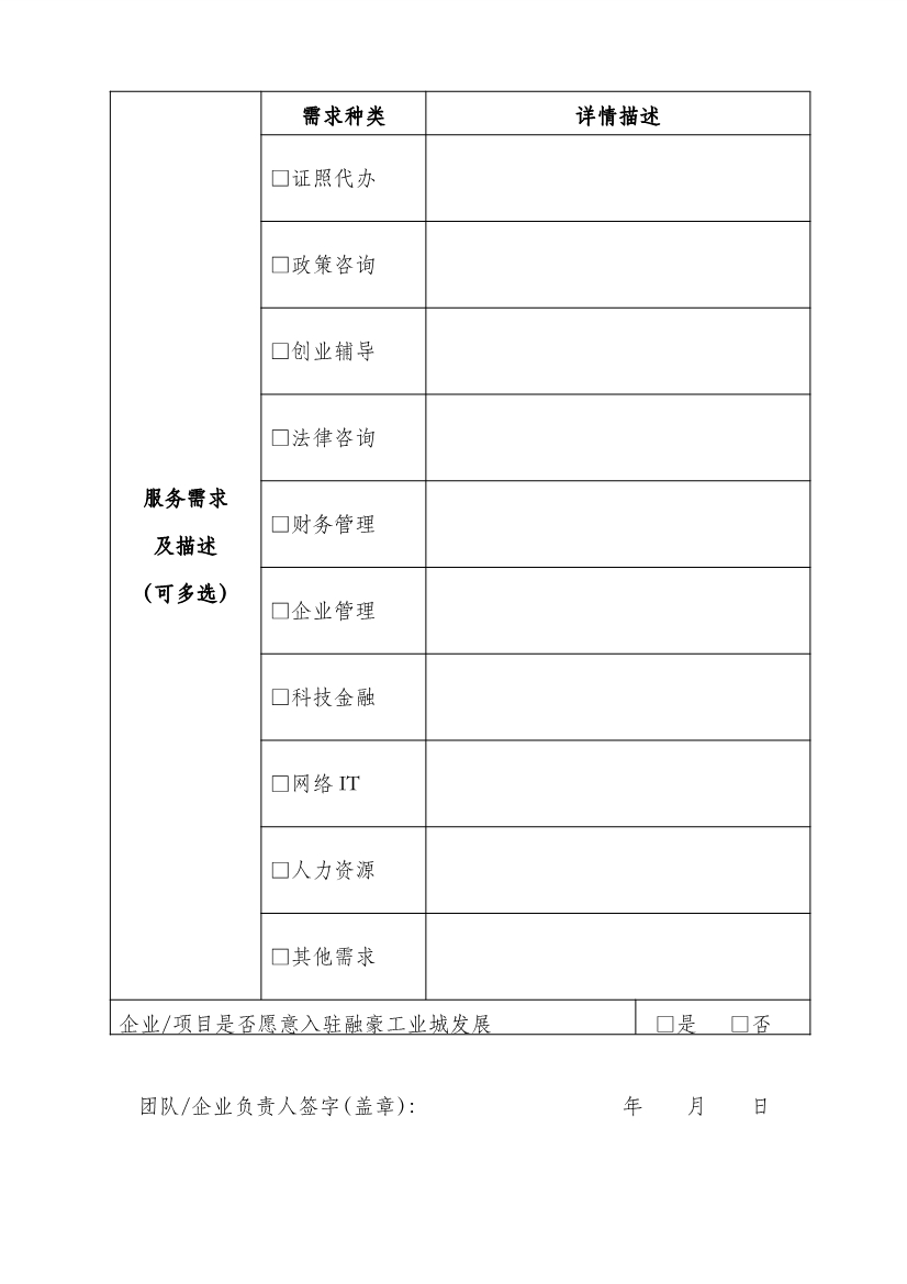 融豪眾創(chuàng)空間預(yù)孵化申請表
